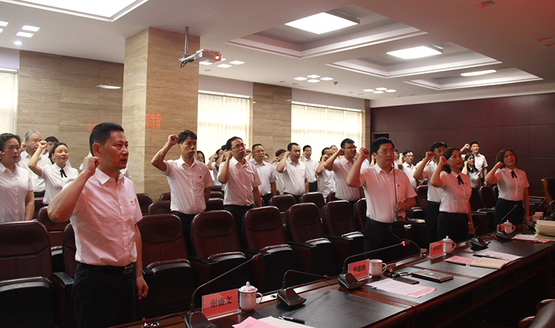 首先,党委书记、董事长詹琼雷带领全体党员重温入党誓词,大家用满怀激情的宣誓声,表达了对党的忠诚和扎实开展主题教育的决心。